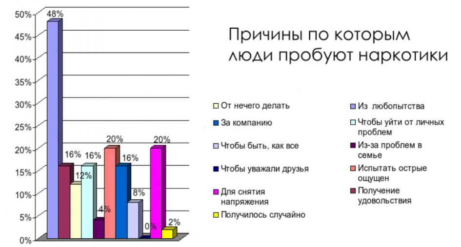 Часто подростки пробуют наркотик, не желая отставать от других членов компании, молодые люди не видят ничего плохого в том, чтобы принять, как их убеждают, «легкий симулятор» в ночном клубе, пополняя через 2-3 вечера ряды зависимых.
